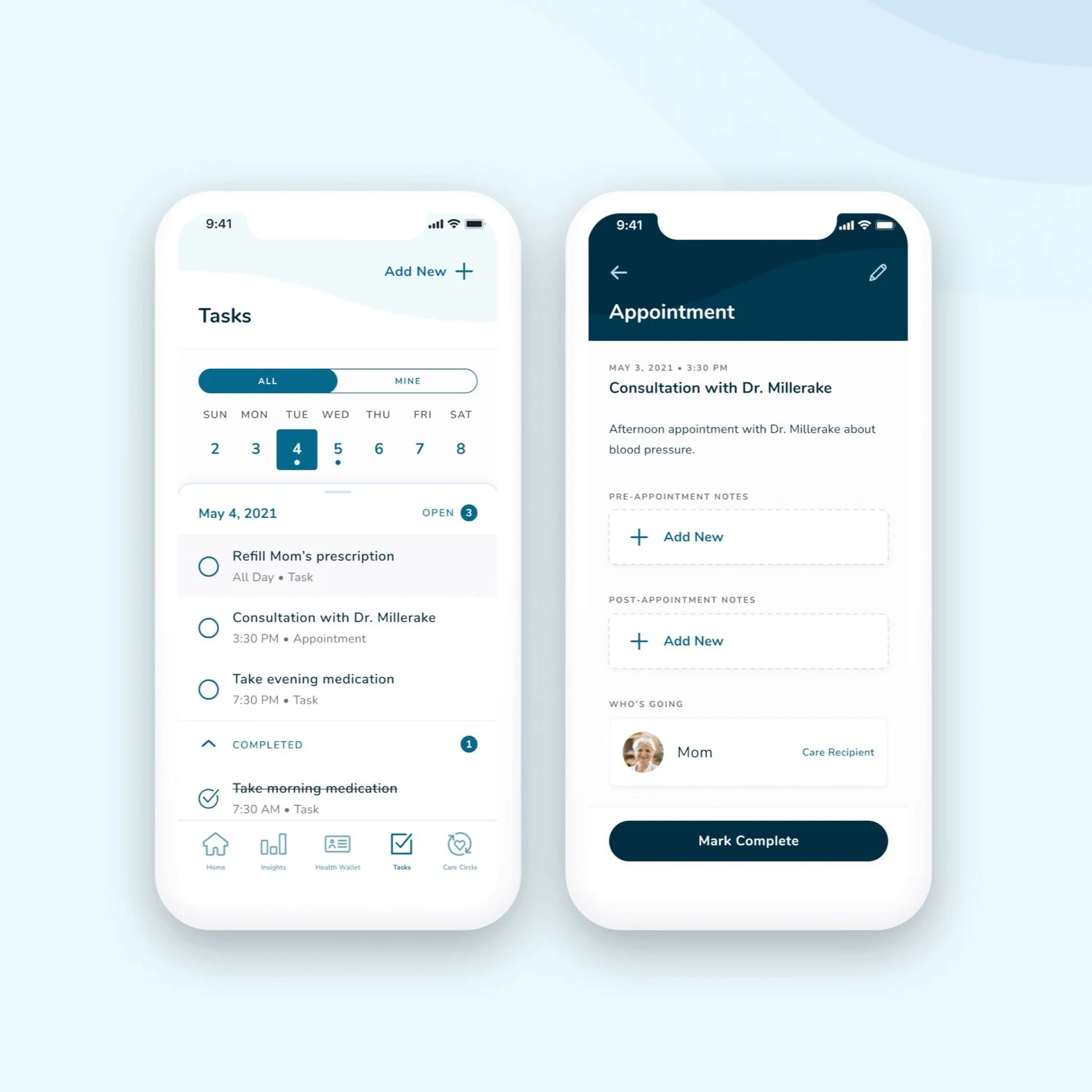 Care recipients also have their own version of the app where they can track their own health, view their care circle and check in when their caregivers when needed.